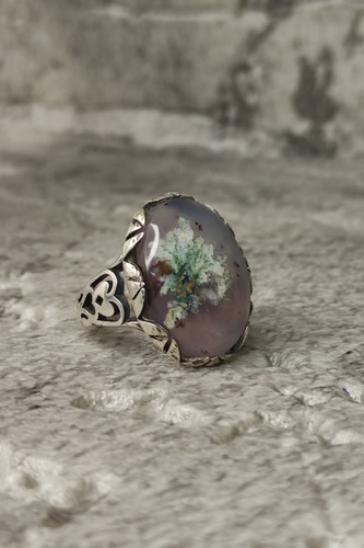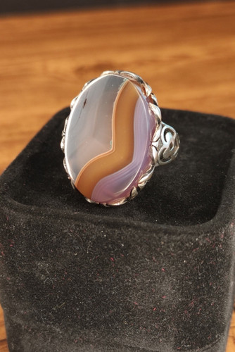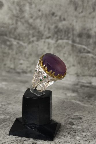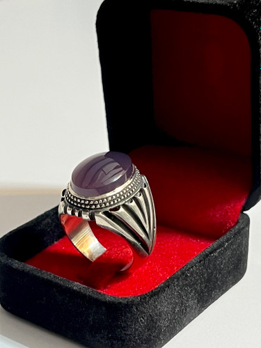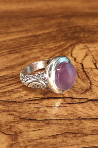 ناموجودانگشتر زنانه نقره با نگین عقیق یاسی