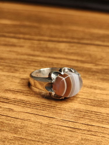 ناموجودانگشتر نقره مردانه با نگین عقیق جزع طبیعی