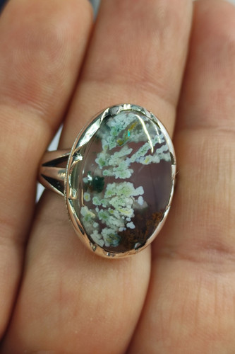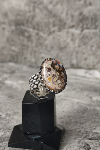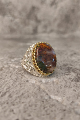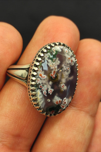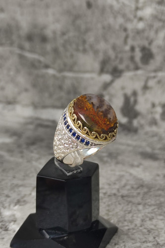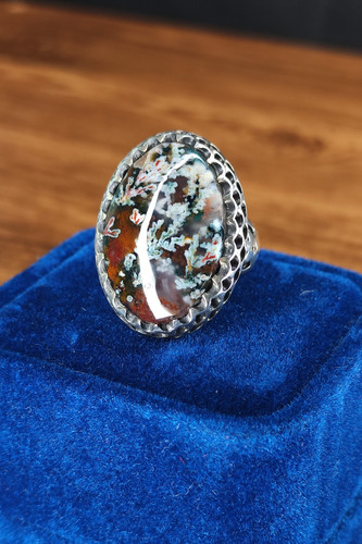 ناموجودانگشتر مردانه نقره با نگین عقیق شجر بهاری هفت رنگ
