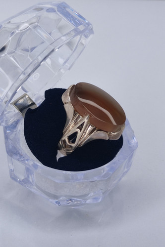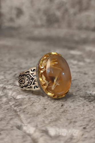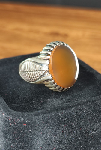 ناموجودانگشتر مردانه نقره با نگین عقیق عسلی طبیعی