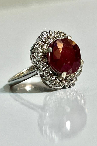 ناموجودانگشتر زنانه نقره روکش رادیوم با نگین گارنت سرخ طبیعی تراش دامله