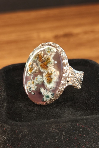 ناموجودانگشتر مردانه نقره با نگین عقیق شجر بهاری هفت رنگ زمینه سوسنی