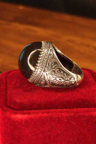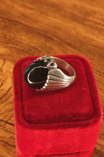 ناموجودانگشتر مردانه نقره با نگین عقیق جزع مشکی تراش دامله