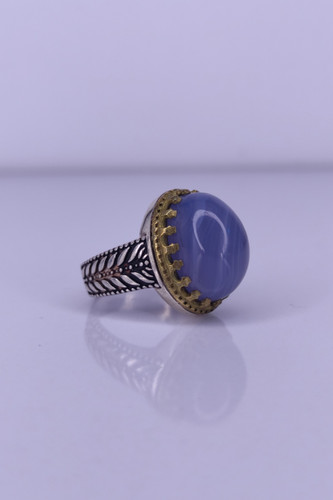ناموجودانگشتر مردانه نقره تاج برنجی با نگین عقیق سلیمانی آبی