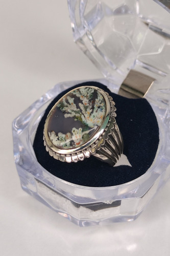 ناموجودانگشتره مردانه نقره 925 با نگین عقیق شجر هفت رنگ