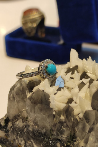 ناموجودانگشتر زنانه نقره روکش رادیوم با نگین فیروزه نیشابور