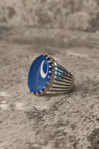 ناموجودانگشتر نقره مردانه با نگین عقیق آبی
