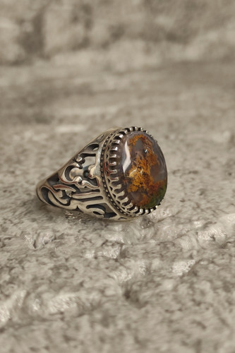 ناموجودانگشتر مردانه نقره 925 با نگین عقیق شجر بهاری