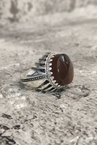انگشتر مردانه نقره ۹۲۵ عقیق جزع تراش گرد