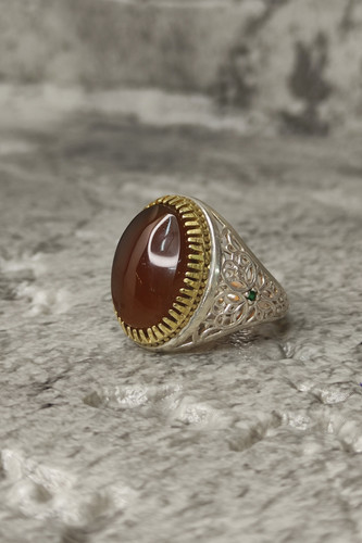 ناموجودانگشتر مردانه نقره دوقاب با نگین عقیق عسلی
