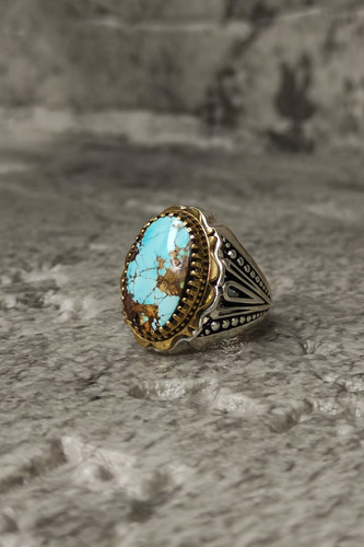 ناموجودانگشتر مردانه نقره 925 با نگین کلکسیونی فیروزه نیشابور طبیعی