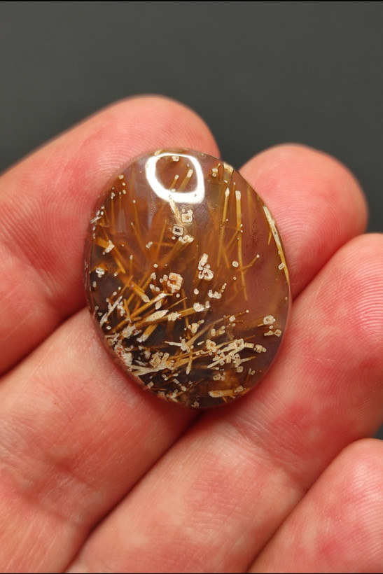 نگین عقیق روتایل یا مویی طبیعی تراش بیضی سایز متوسط مناسب انگشتر وگردن آویز بسیار زیبا و جذاب با تشکر گالری تیرازیس