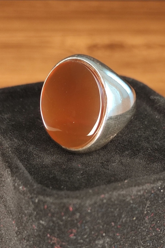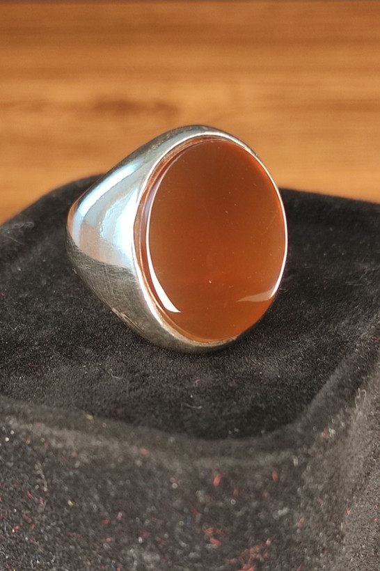 انگشتر نقره مردانه رکاب فیلی با نگین عقیق جزع کاملا طبیعی و معدنی بسیار زیبا و کلاسیک سایز 61-62 با تشکر گالری تیرازیس