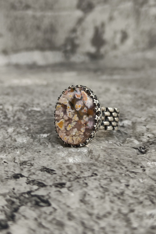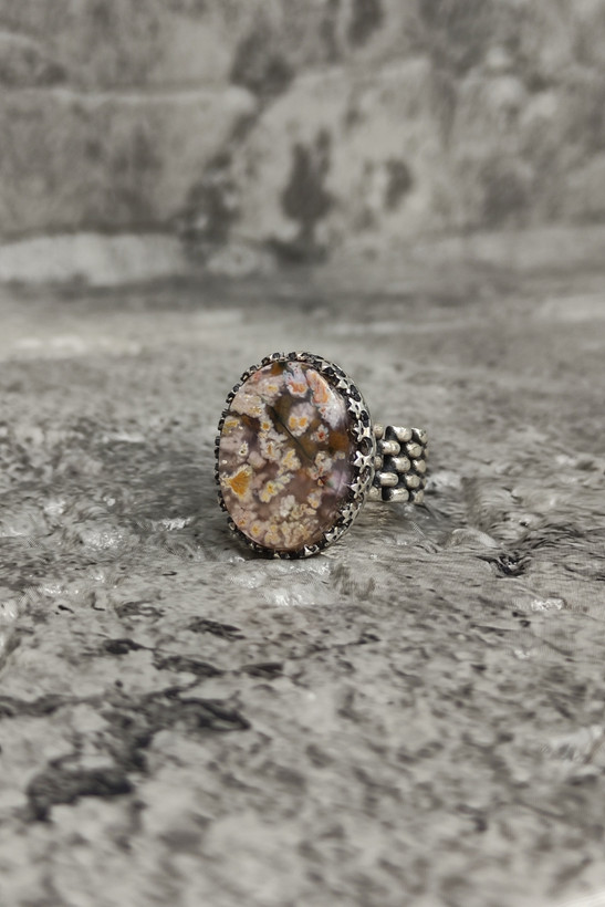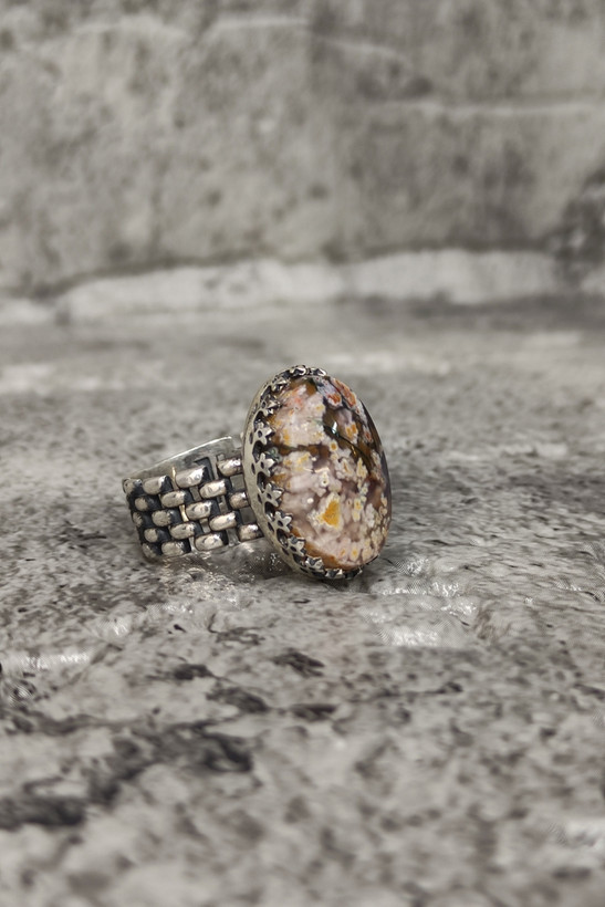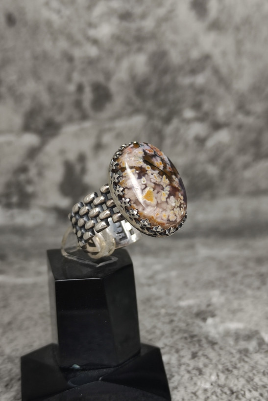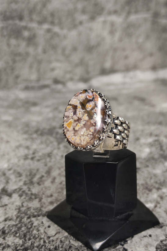 انگشتر مردانه نقره 925 رولکسی با نگین عقیق شجر بهاری هفت رنگ