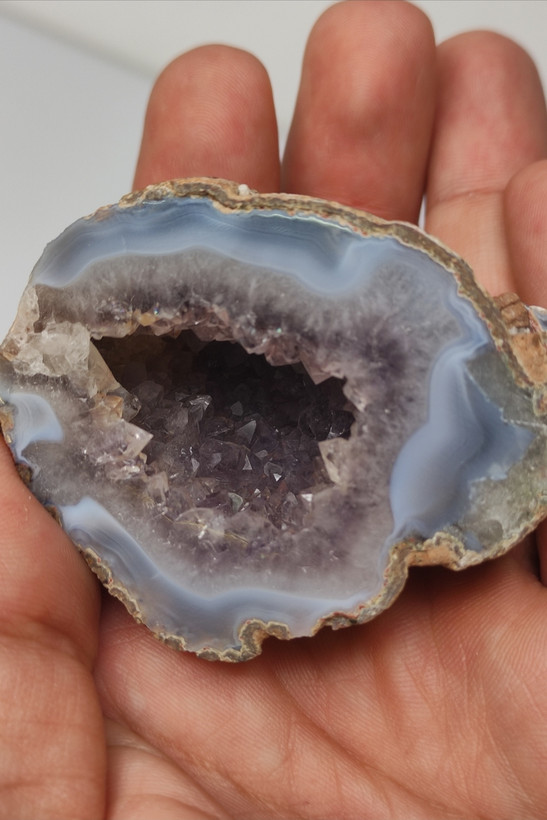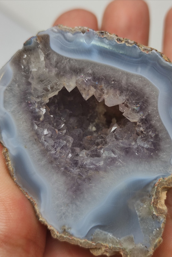 سنگ توپی ژئود آمیتیست طبیعی با حاشیه عقیق سلیمانی برش خورده و پولیش شده بسیار زیبا و جذاب با تشکر گالری تیرازیس