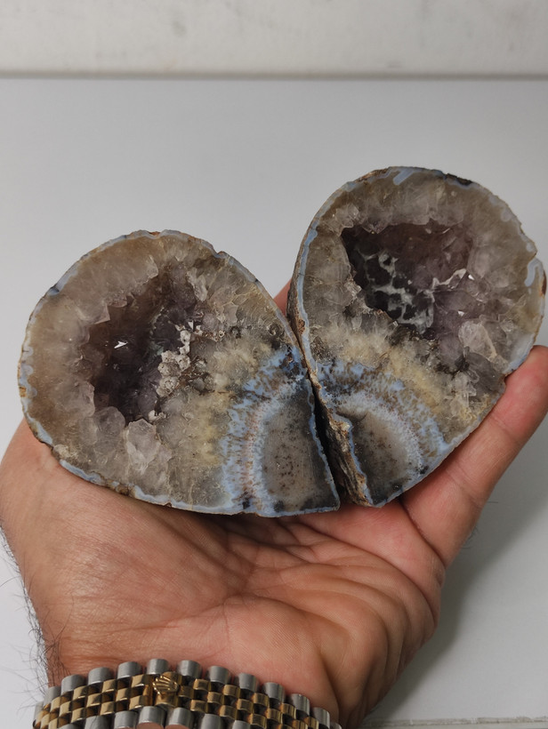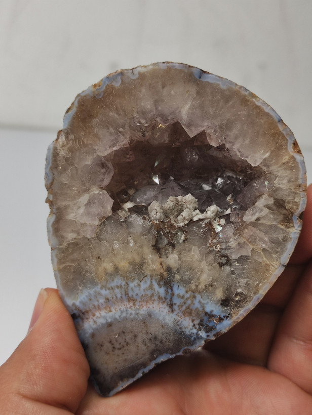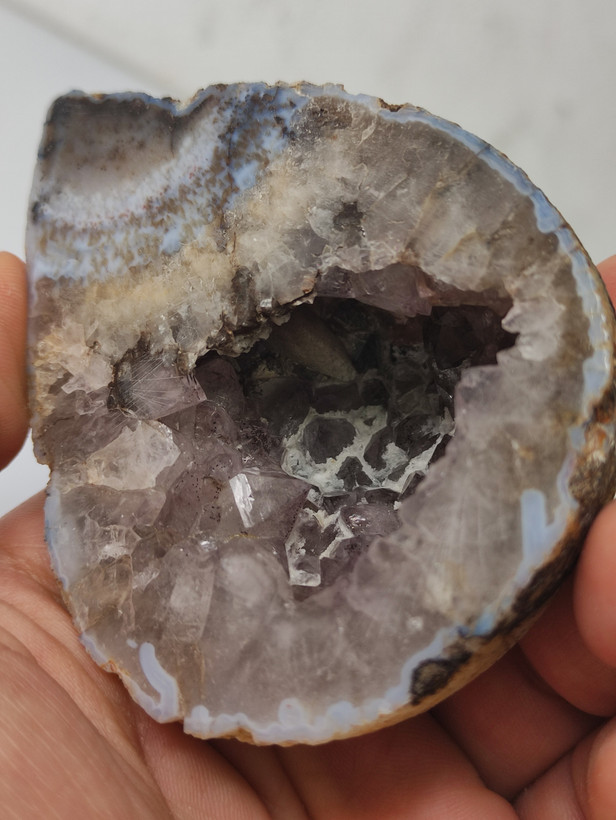 سنگ توپی ژئود آمیتیست طبیعی با بلورهایی درشت و شفاف برش خورده و پولیش شده بسیار زیبا و خاص با تشکر گالری تیرازیس