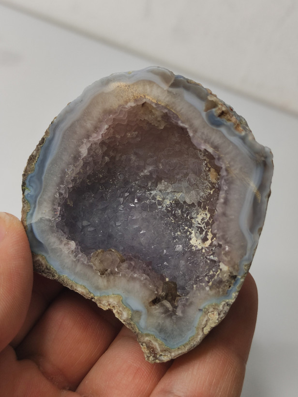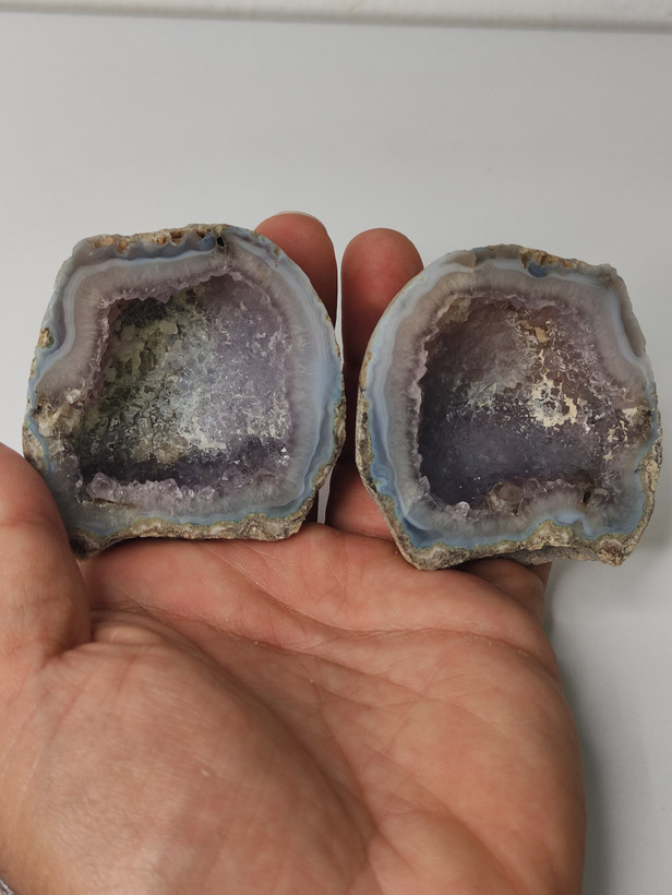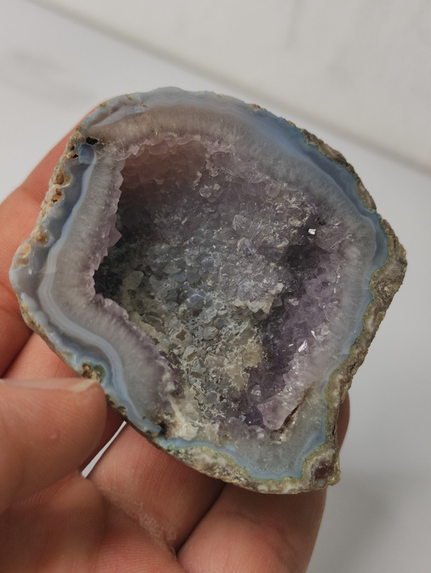سنگ توپی ژئود آمیتیست طبیعی با همرشدی بلورهای کلسیت برش خورده و پولیش شده بسیار زیبا و دیدنی با تشکر گالری تیرازیس