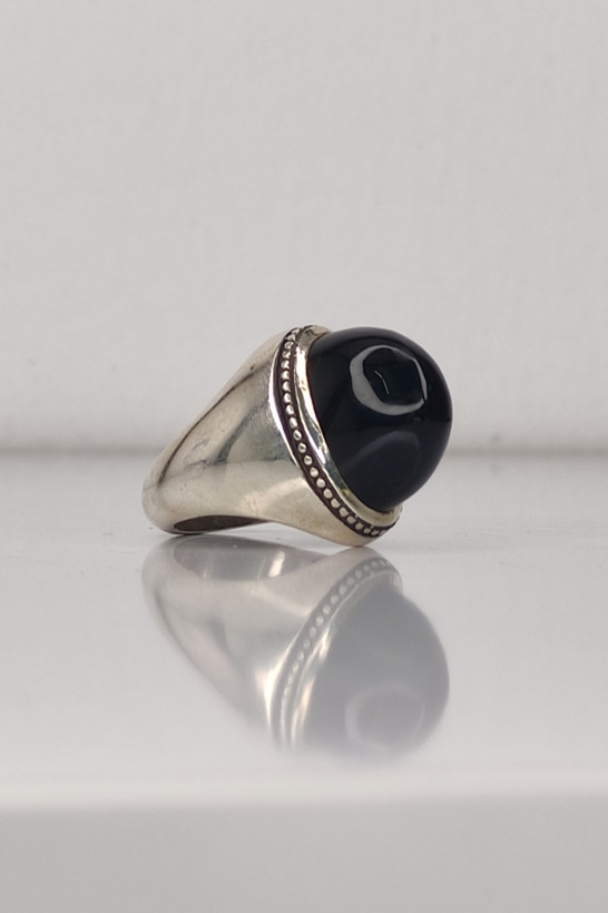 انگشتر مردانه نقره با نگین عقیق جزع مشکی تراش دامله