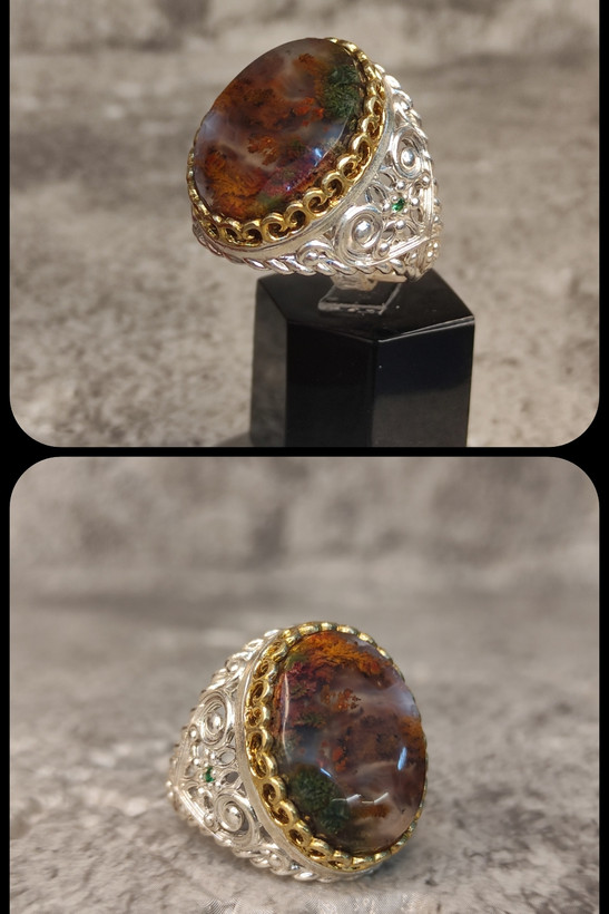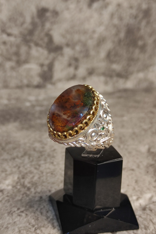 انگشتر نقره 925 مردانه با نگین عقیق شجر پاییزی منظره فوقالعاده زیبا و خاص بسیار با کیفیت با تشکر گالری تیرازیس
