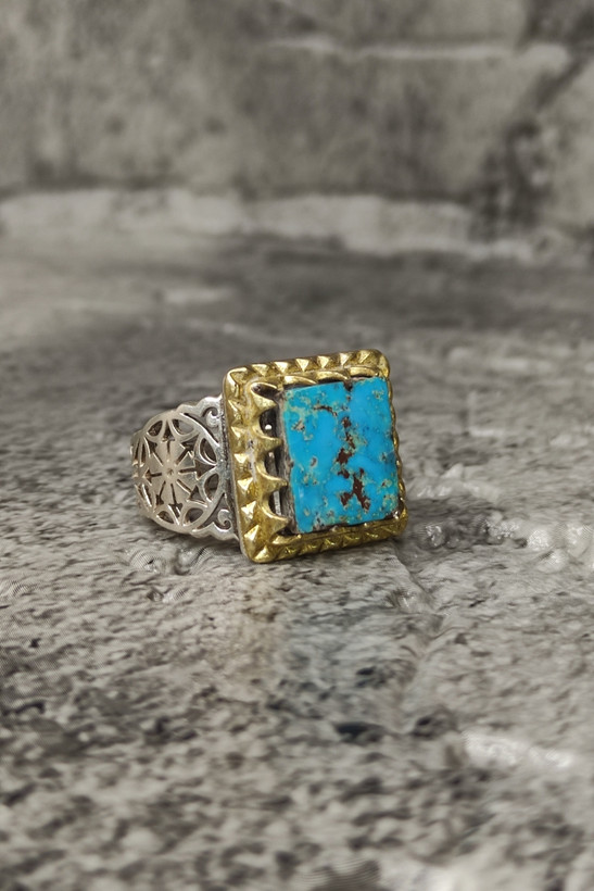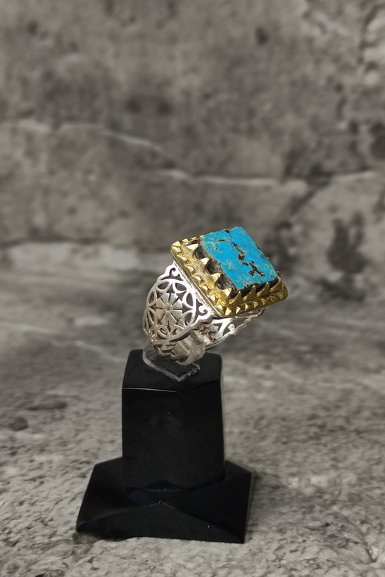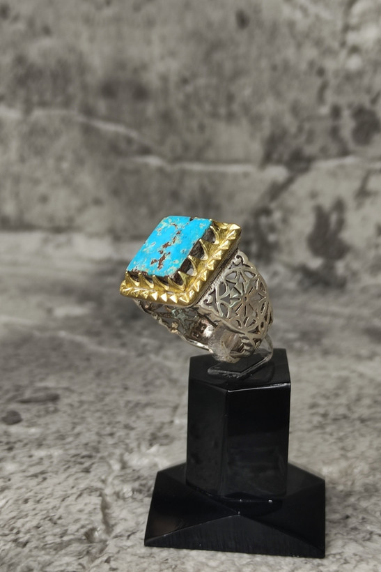 انگشتر مردانه نقره 925 با نگین فیروزه نیشابور کاملا طبیعی و معدنی بسیار زیبا و چشم نواز با تشکر گالری تیرازیس