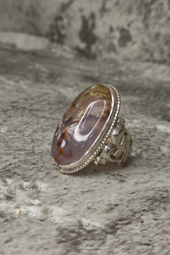 انگشتر مردانه نقره با نگین عقیق شجر بهاری هفت رنگ