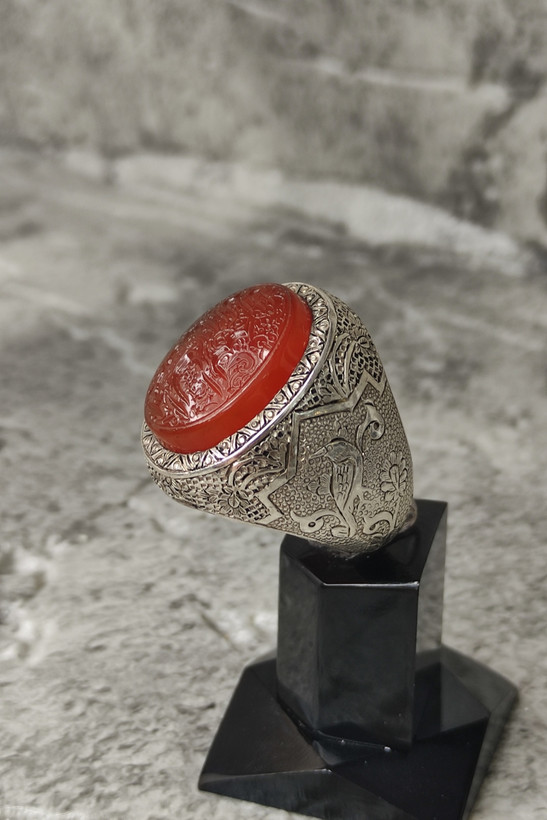 انگشتر مردانه نقره دستساز بسیار فاخر با نگین یمن و حکاکی استادانه اشهد ان لا اله الا الله فول قلم کاری شده بسیار زیبا و کلکسیونی با تشکر گالری تیرازیس