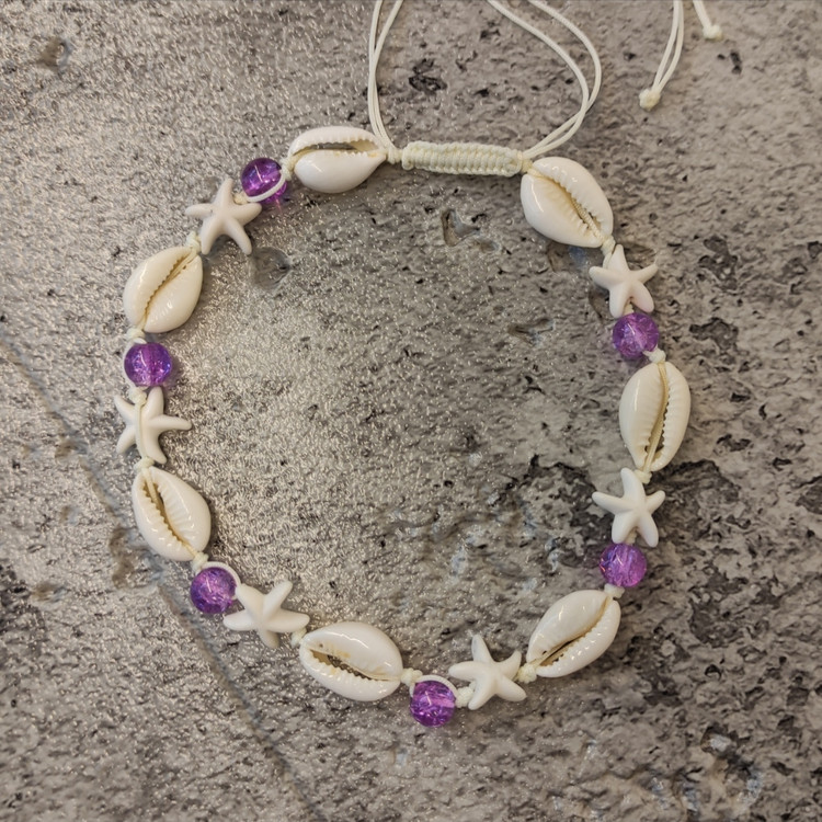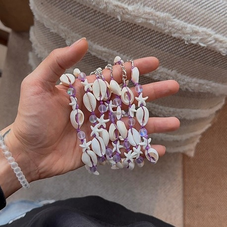 گردنبند صدف و ستاره دریایی با گوی بنفش بندی قابل تنظیم فری سایز با خیال راحت میتونید سفارش بدید بسیار زیبا و خاص با تشکر گالری تیرازیس