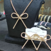 نیم ست گردنبند و گوشواره پاپیون فول نگین طلایی بسیار زیبا و خاص استیل رنگ ثابت و ضد حساسیت مناسب دختر خانم های خوش پوش و خوش سلیقه با داشتنش خوشتیپتر میشی با تشکر گالری تیرازیس