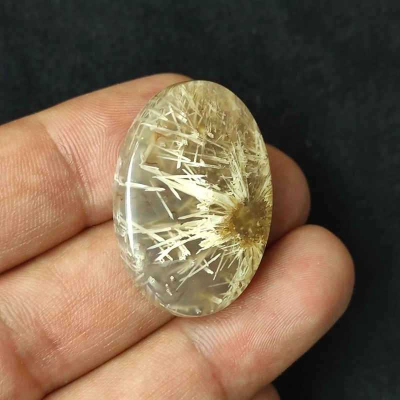 نگین عقیق روتایل سوزنی خورشیدی کاملا طبیعی و معدنی