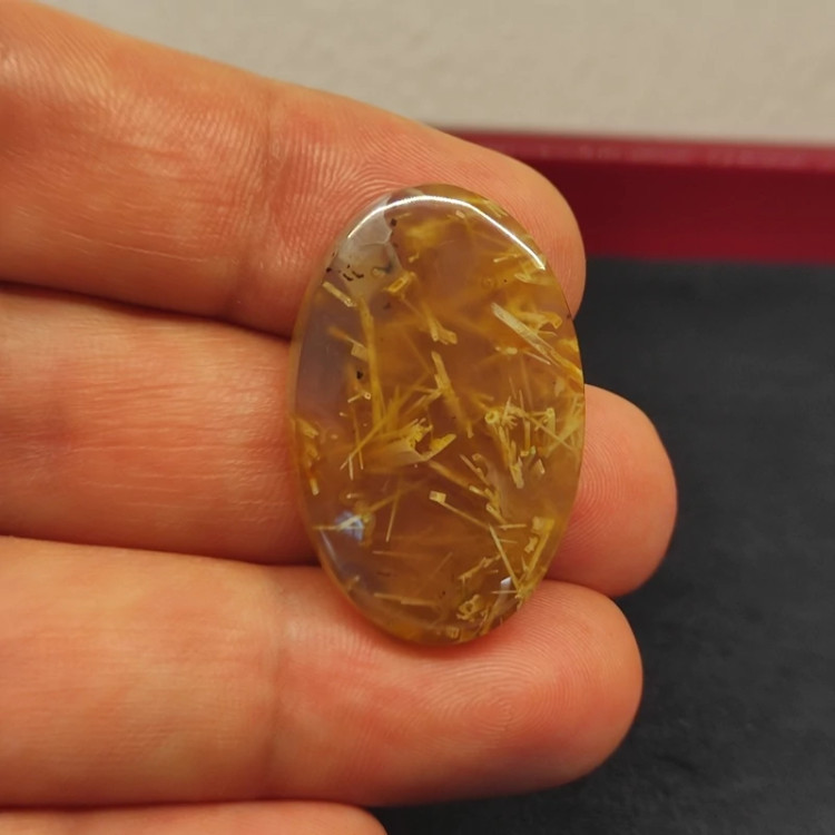 نگین جذاب عقیق روتایل طلایی کاملا طبیعی و معدنی استخراج شده از معادن غنی خراسان جنوبی تراش هنرمندانه دست بدون نقص هدیه ای ارزشمند و ماندگار از دل طبیعت شما با داشتنش میتونید هم از زیبایی و هم از انرژی بینظیرش لذت ببرید با تشکر گالری تیرازیس