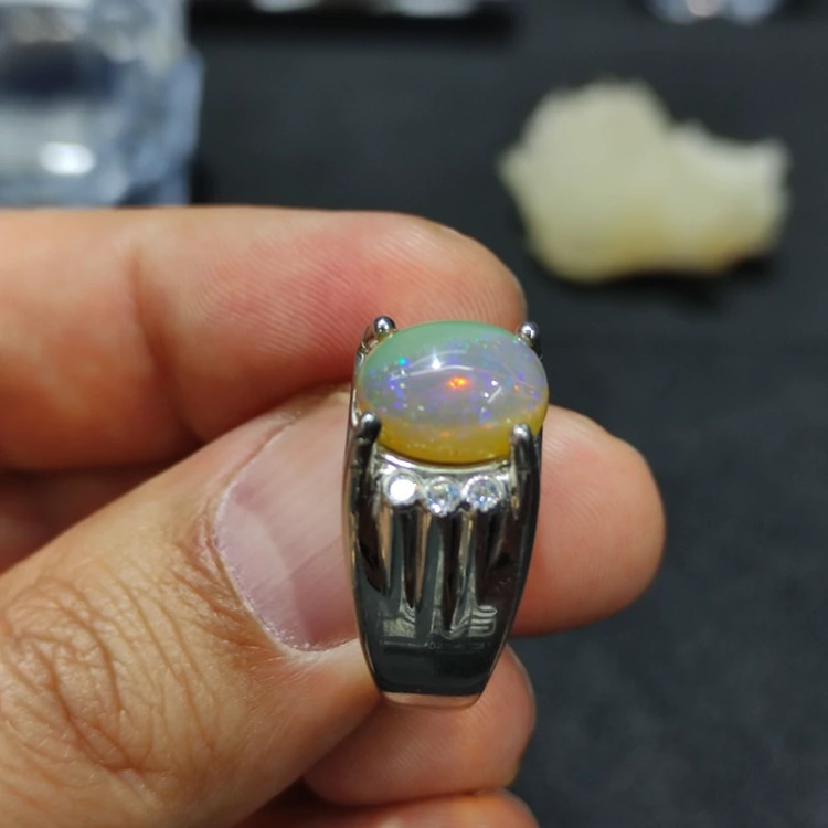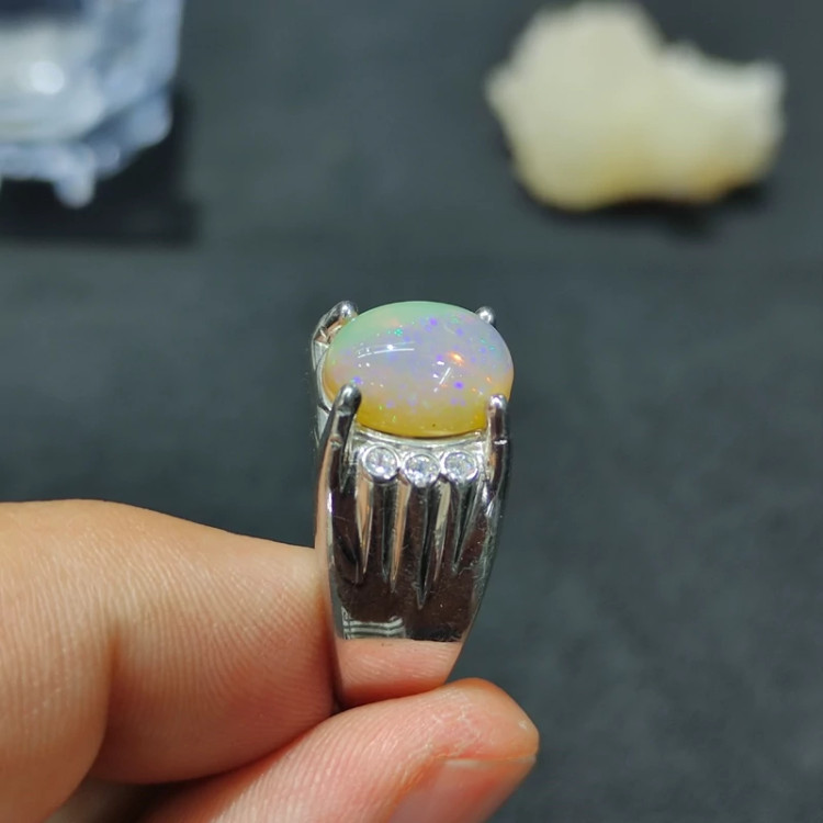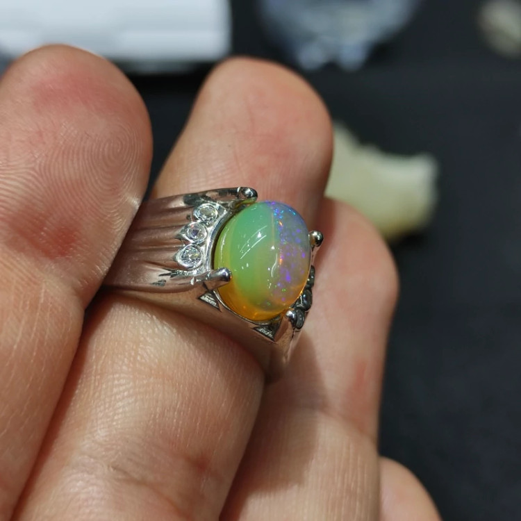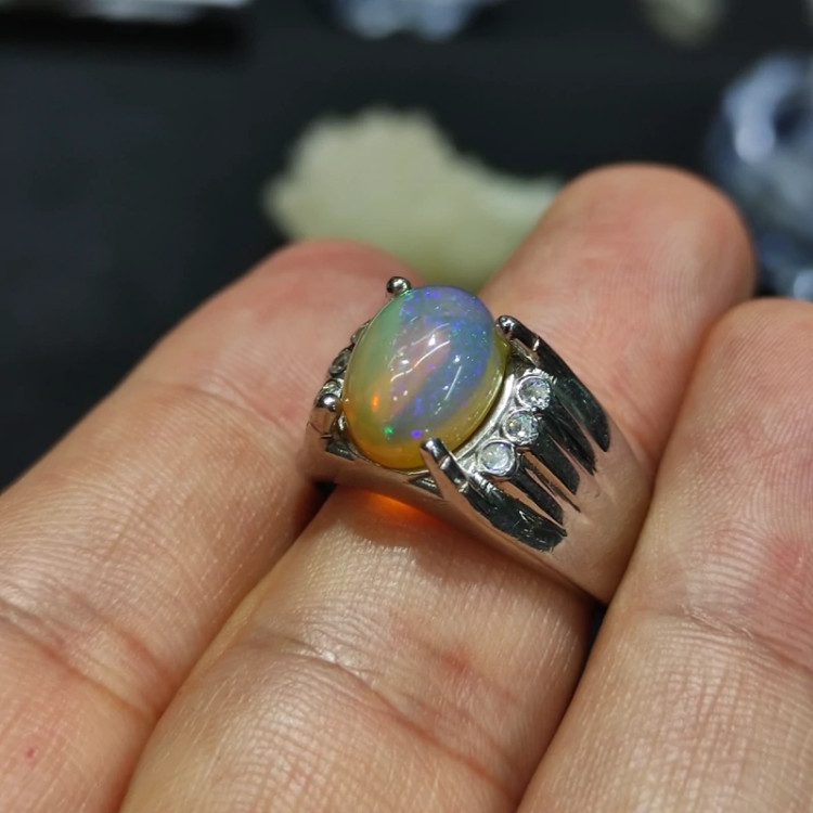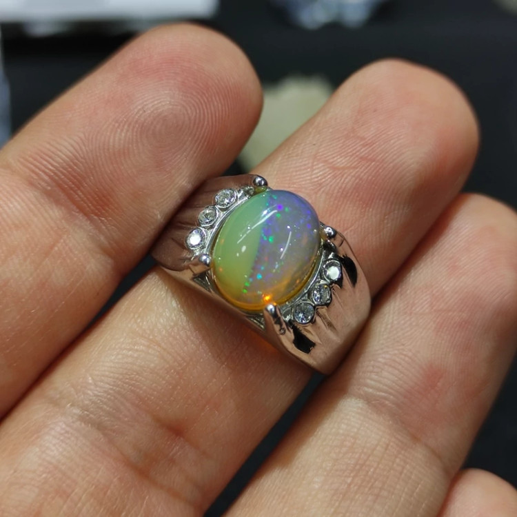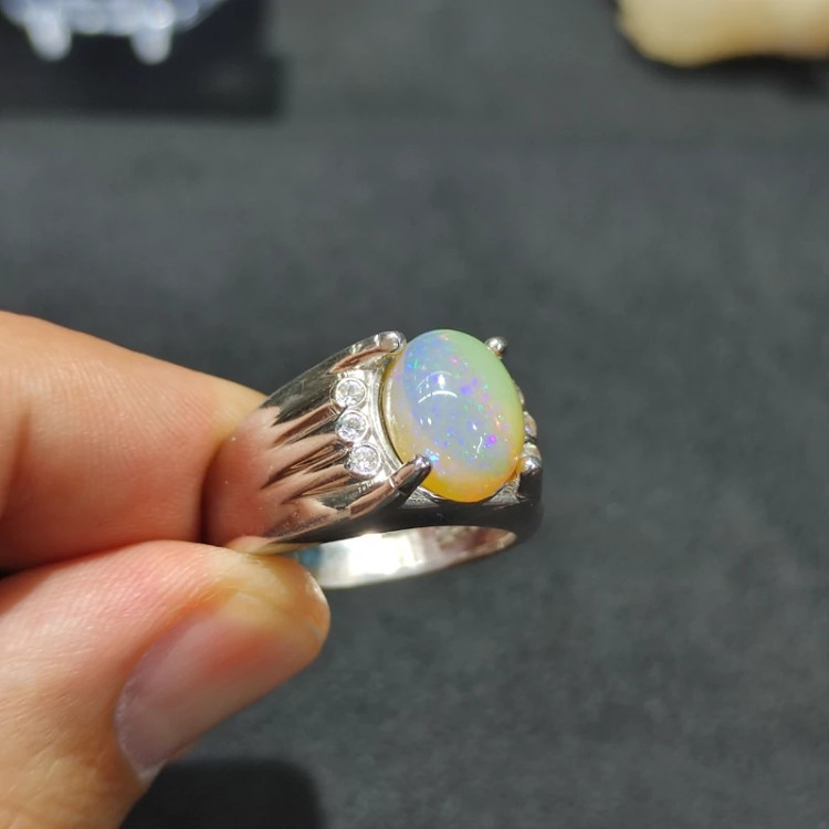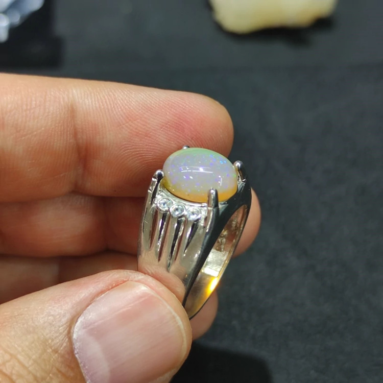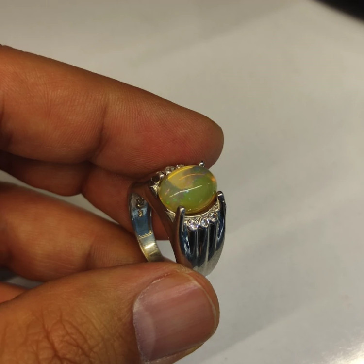 انگشتر نقره مردانه با نگین اوپال طبیعی روکش رادیوم