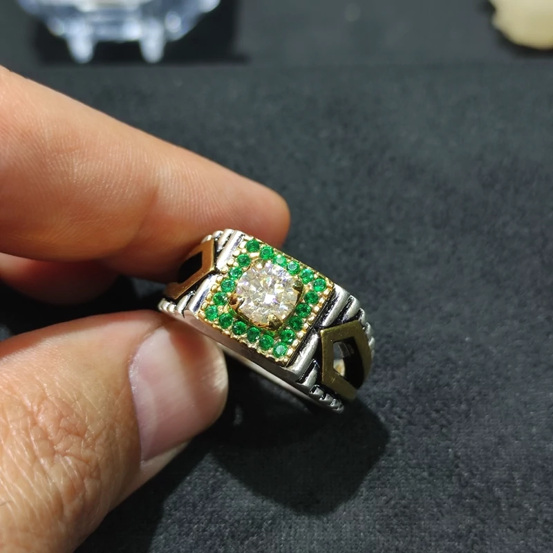انگشتر نقره مردانه با نگین مویزنایت تراش برلیان
