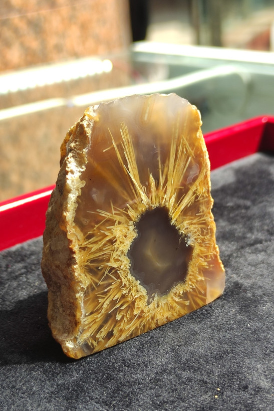 سنگ راف فوق کلکسیونی عقیق روتایل خورشیدی بینظیر کاملا طبیعی و معدنی استخراج شده از معادن خراسان جنوبی بسیار زیبا و منحصر به فرد پولیش آینه ای مناسب کلکسیون شخصی هم از زیبایی و هم از انرژی بینظیر این اثر هنری میتونید لذت ببرید با تشکر گالری تیرازیس