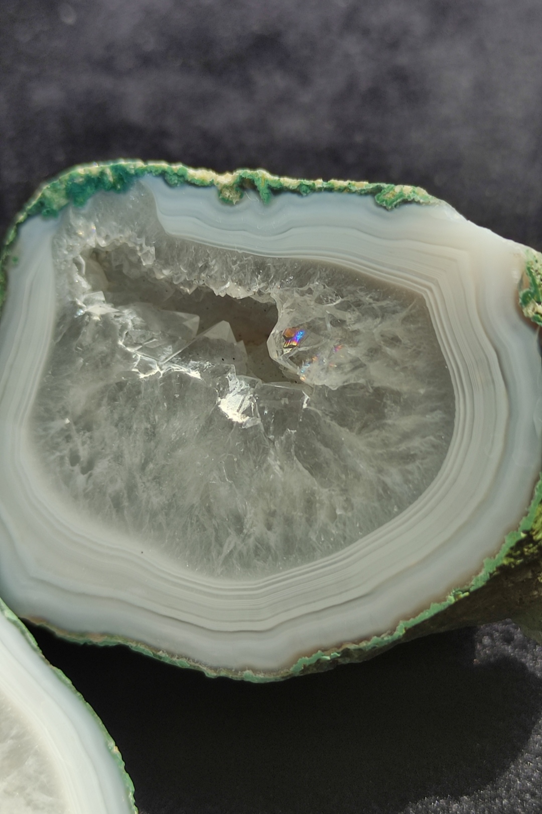سنگ توپی ژئود با حاشیه سلیمانی لیزری کاملا طبیعی و معدنی استخراج شده از معادن خراسان جنوبی بسیار زیبا و خاص مناسب کلکسیون شخصی که هم میتونید از زیبایی و هم از انرژی این سنگ بینظیر لذت ببرید با تشکر گالری تیرازیس