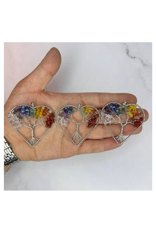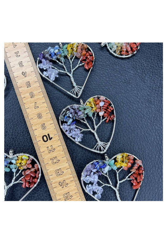آویز درختچه بزرگ قلب هفت چاکرا ساخته شده از سنگهای طبیعی سرشار از انرژی مثبت و حس خوب و آرامش تنظیم چاکراها و تعادل و تنظیم انرژی های روح هدیه ای ارزشمند و ماندگار برای خودتون یا عزیزانتون با تشکر گالری تیرازیس