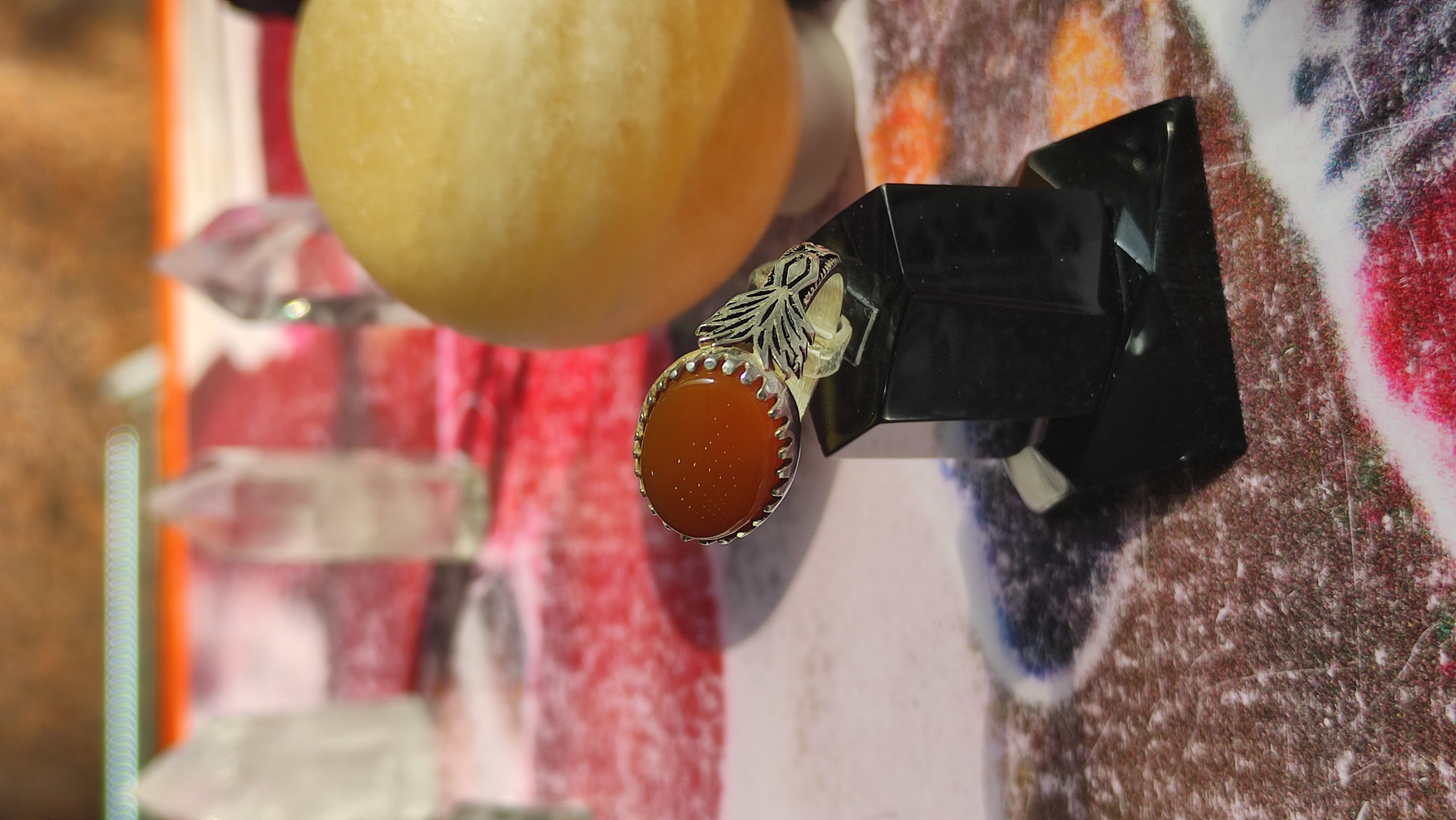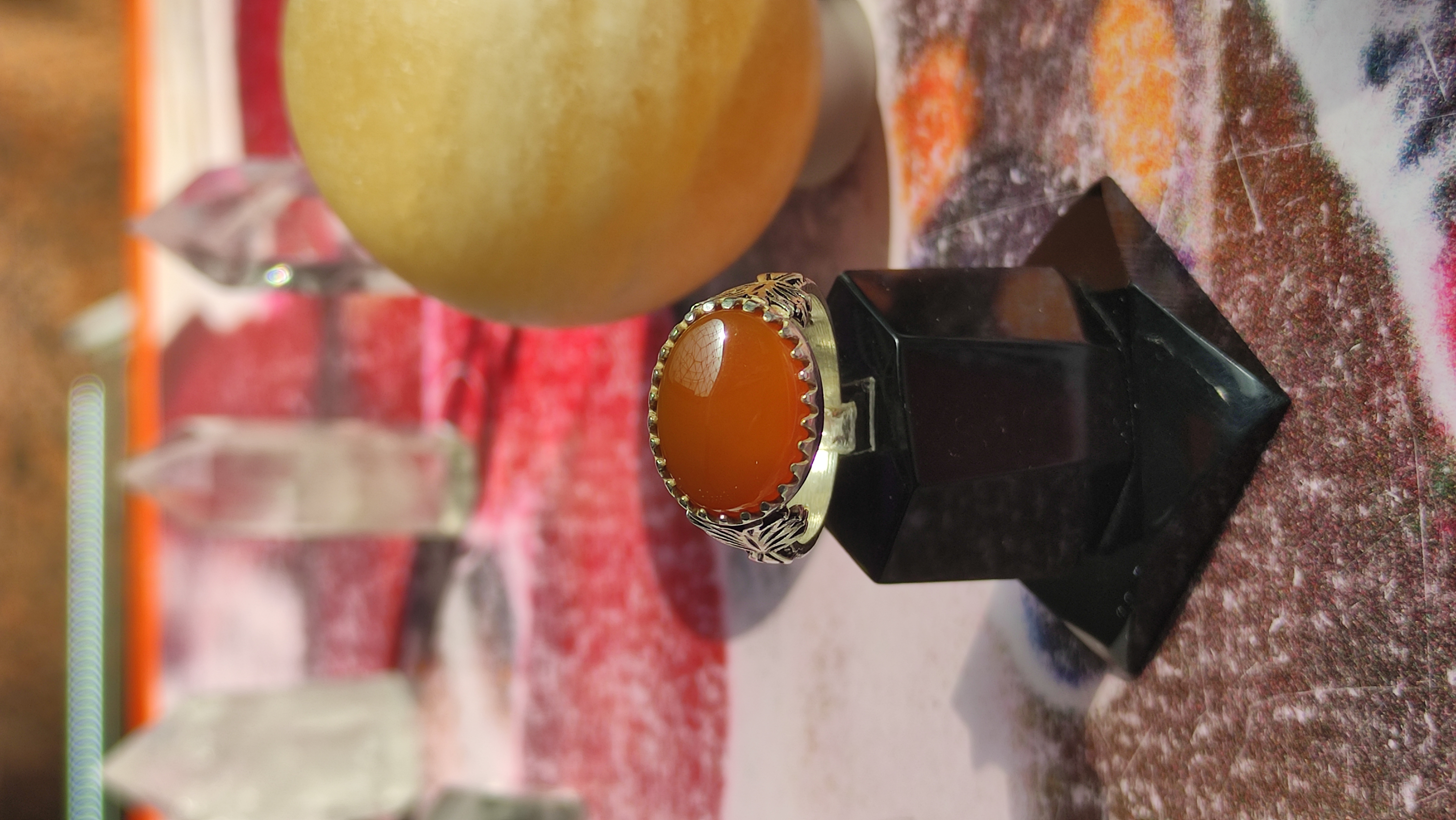 انگشتر مردانه نقره 925 با نگین عقیق پرتقالی درجه یک با ذکر دعای شرف شمس بسیار زیبا و جذاب رکاب دستساز قلم کاری شده با تشکر گالری تیرازیس